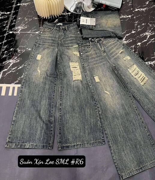 ខោជើងដំរី រហែកជង្គង់ សងខាង ពណ៍ខាវប៊យប្រផេះ