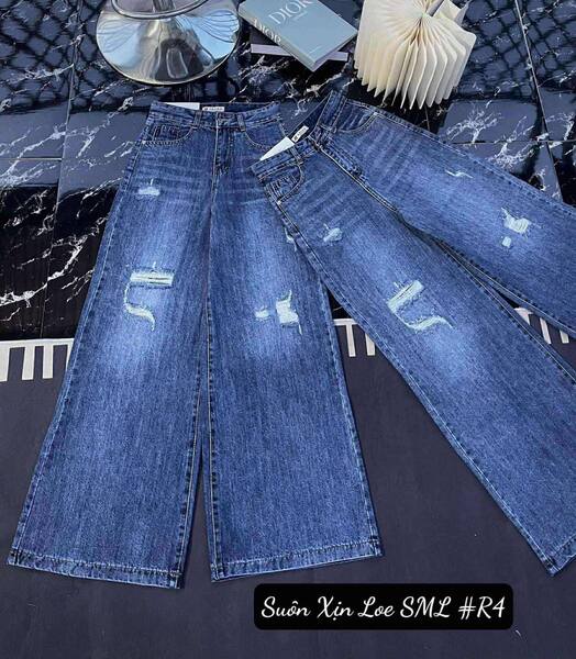 ខោជើងដំរី ពណ៍ខាវប៊យ រហែកជង្កង់