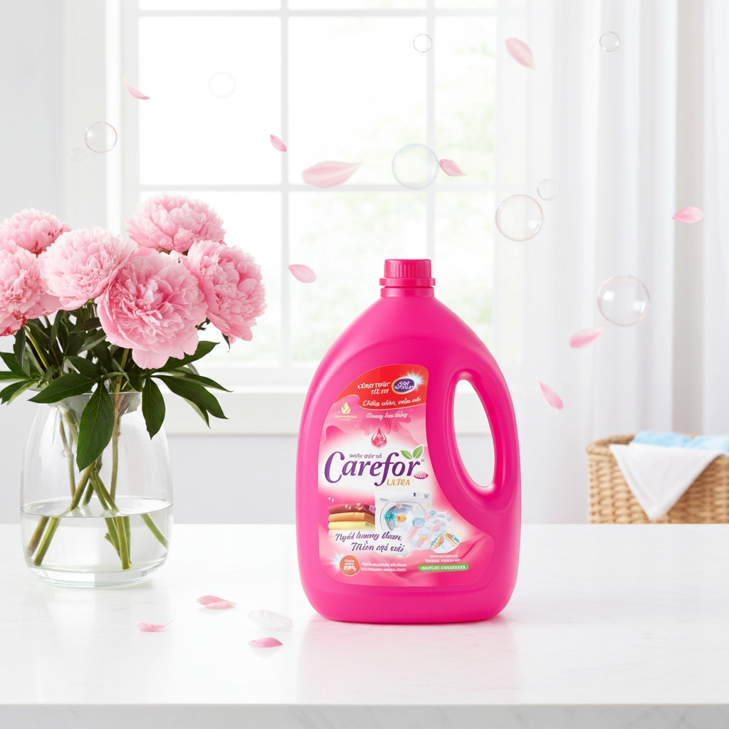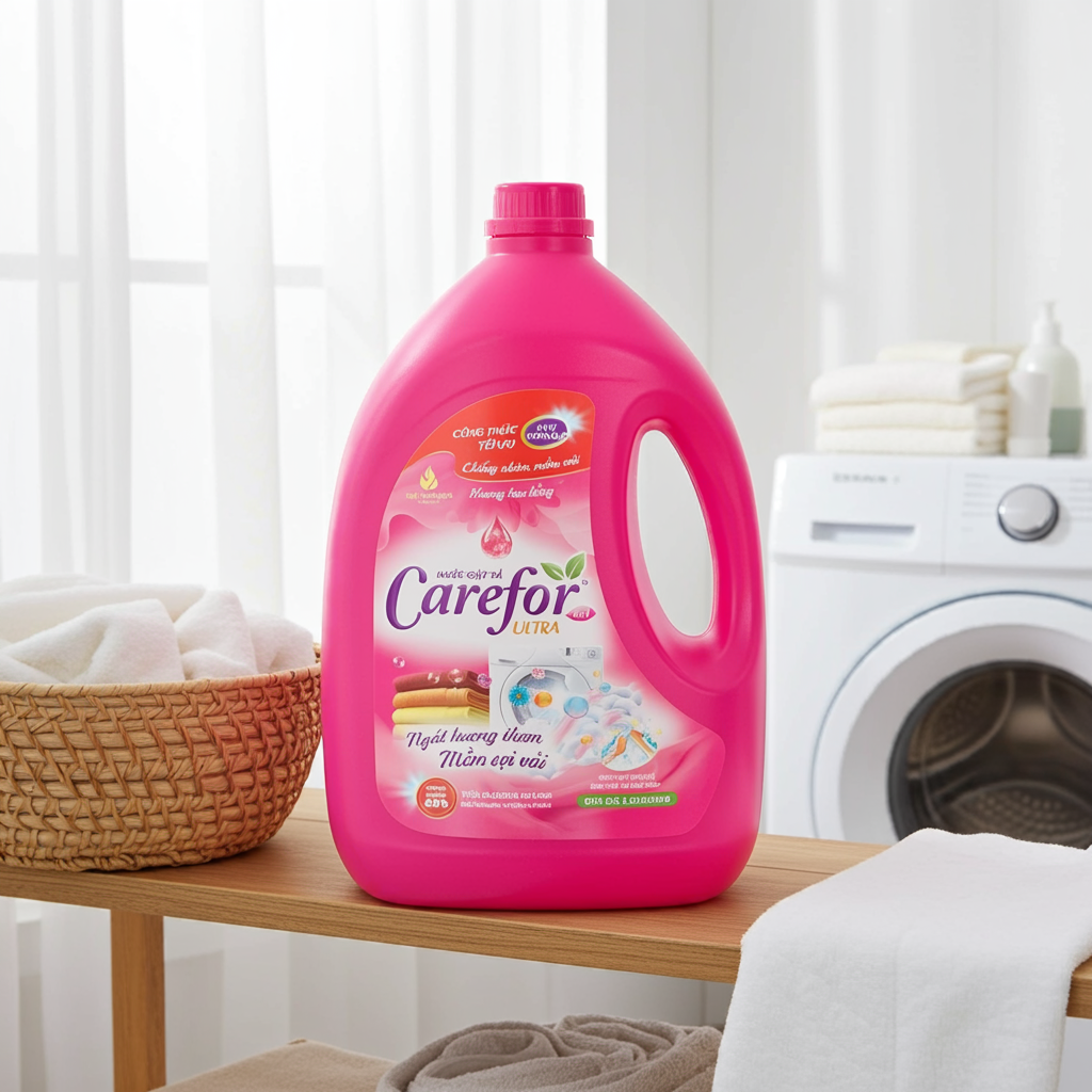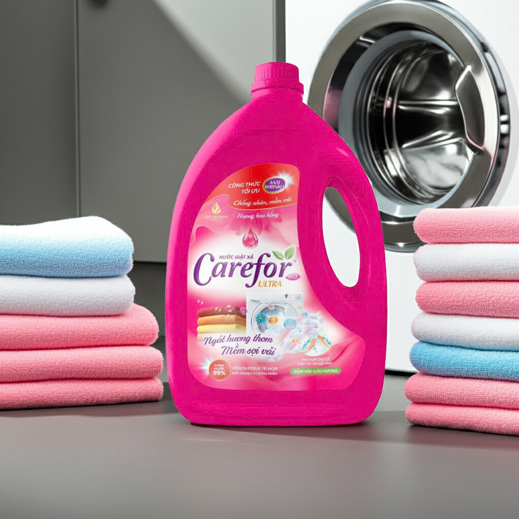 CAREFORE Laundry Detergent, 3200 ml, cleans clothes well, removes stains quickly, has a pleasant fragrance, sticks to the fabric, contains softening agents that make the fabric soft, shiny, and smooth, and does not contain any substances that cut or dry the hands.